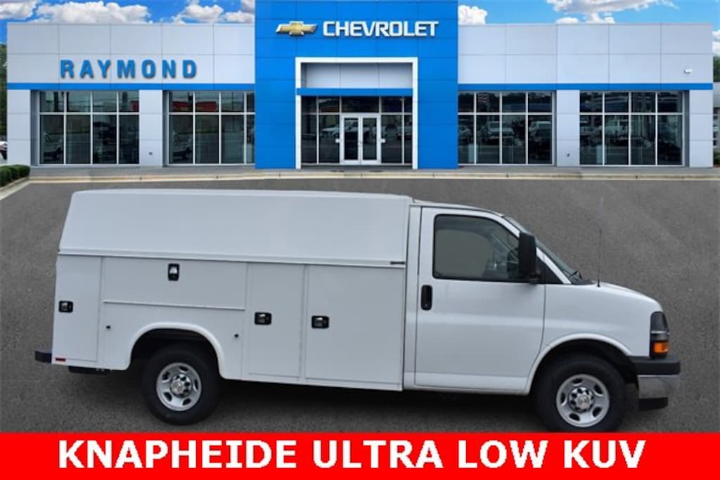 **COMMERCIAL VEHICLE** **KNAPHEIDE ULTRA LOW KUV** **ELECTRIC BRAKE CONTROLLER** **CLASS V RECEIVER HITCH WITH 2-1/2 RECEIVER TUBE RATED FOR 12,000LBS MAXIMUM TRAILER WEIGHT** **7-WAY TRAILER PLUG - FLAT** **MASTER LOCKING SYSTEM** **WORK-READY TRUCK BUILT FOR ANY JOB YOU NEED DONE** 2025 Chevrolet Express 3500 Work Van Cutaway RWD