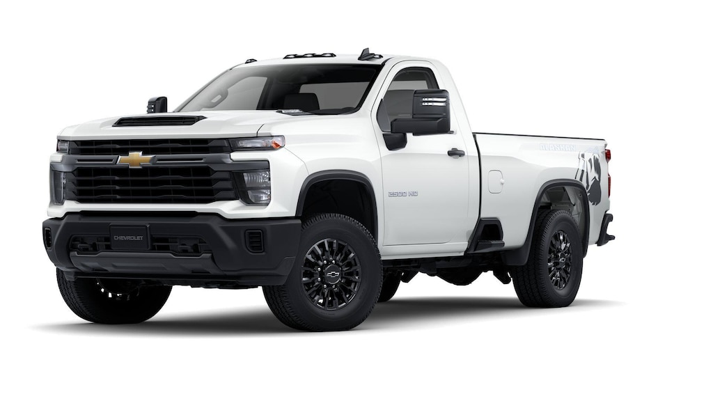 10-Speed Automatic, 4WD, Black Cloth, 170 Amp Alternator, 2-Speed Electronic Shift Transfer Case, 220 Amp Alternator, 3.5 Diagonal Monochromatic Display DIC, Alaskan Snow Plow Special Edition, Alaskan Snow Plow Special Edition Decal, Black Chevytec Spray-On Bedliner, Black Front Bumper, Black Mirror Caps, Black Rear Bumper, Bluetooth® For Phone, Chevrolet Connected Access Capable, Compass, Electronic Cruise Control w/Set & Resume Speed, HD Rear Vision Camera, LED Smoked Amber Roof Marker Lamps, Locking Tailgate, Manual Tailgate Function w/No EZ Lift, Manual Tilt-Wheel Steering Column, OnStar Services Capable, Power Door Locks, Power Front Windows w/Driver Express Up/Down, Preferred Equipment Group 1WT, Push Button Start, Remote Keyless Entry, Rubberized-Vinyl Floor Covering, Snow Plow Prep/Camper Package, Solar Absorbing Tinted Glass, Standard Tailgate, Suspension Package, Wheels: 18 High Gloss Black Aluminum, Wi-Fi Hotspot Capable, Wireless Phone Projection. 2025 Chevrolet Silverado 2500HD Work Truck 4WD Price includes: $1000 - Chevrolet Consumer Cash Program. Exp. 11/03/2025