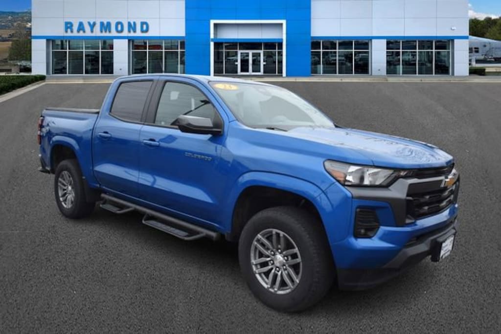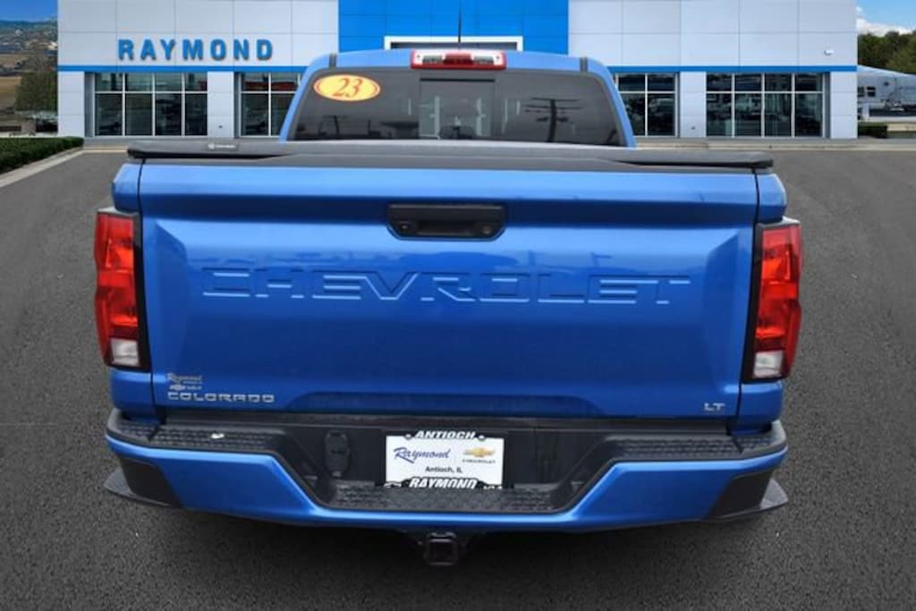 Raymond Chevrolet Kia Antioch, IllinoisServing Northern Illinois & Southern Wisconsin Since 1963Tough, modern, and packed with advanced techthis CARFAX One-Owner, Clean CARFAX 2023 Chevrolet Colorado LT 4WD is built to handle work, play, and everything in between.Vehicle Overview2023 Chevrolet Colorado LT 4WDColor: Glacier Blue MetallicEngine: 2.7L TurboTransmission: 8-Speed AutomaticDrivetrain: 4WDCARFAX: One-Owner / Clean CARFAXPerformance & Capability2.7L Turbocharged Engine Strong, efficient power4WD for off-road and all-weather confidenceHeavy-Duty Trailering PackageIntegrated Trailer Brake ControllerStowFlex Tailgate Storage CompartmentEZ-Lift & Lower TailgateInterior & Comfort8-Way Power Driver Seat w/ Lumbar SupportHeated Driver & Front Passenger SeatsDual-Zone Automatic Climate ControlManual Rear Sliding WindowSpacious and functional cabin designTechnology & ConnectivityApple CarPlay & Android AutoNavigation SystemWireless ChargingSteering Wheel Mounted Audio ControlsRemote Start SystemRemote Keyless EntrySafety & Driver AssistanceChevy Safety Assist PackageAutomatic Emergency BrakingForward Collision AlertLane Keep Assist w/ Lane Departure WarningFollowing Distance IndicatorFront Pedestrian & Bicyclist BrakingIntelliBeam Automatic High BeamsPackages & HighlightsPreferred Equipment Group 4LTLT Convenience Package & Convenience Package IIFront LED Fog Lamps17 Argent Metallic Aluminum WheelsAuto-Dimming Rearview MirrorWhy Buy from Raymond Chevrolet Kia?Trusted dealership since 1963Serving Antioch, IL & surrounding areasFully inspected, high-quality vehiclesEasy, no-pressure buying experienceTake It Home Today!This 2023 Colorado LT 4WD delivers the perfect mix of rugged capability, modern technology, and everyday comfortdont miss it!