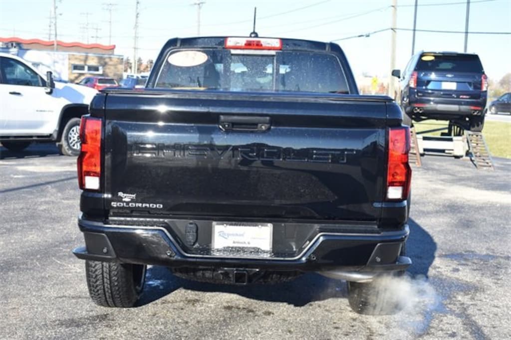 CARFAX One-Owner. Clean CARFAX. Black 2023 Chevrolet Colorado Trail Boss 4WD 8-Speed Automatic 2.7L Turbo 4WD, 8-Way Power Driver Seat Adjuster, Adaptive Cruise Control, Advanced Trailering Package, Alloy wheels, Automatic Emergency Braking, Black Painted Mirror Caps, Blind Zone Steering Assist, Chevy Safety Assist, Electronic Automatic Cruise Control, EZ-Lift & Lower Tailgate, Following Distance Indicator, Forward Collision Alert, Front Pedestrian & Bicyclist Braking, HD Surround Vision, Heated Power-Adjustable Outside Mirrors, Heavy-Duty Trailering Package, Integrated Trailer Brake Controller, IntelliBeam Automatic High Beam On/Off, Lane Keep Assist w/Lane Departure Warning, Manual Rear-Sliding Window, Power Driver Lumbar Control Seat Adjuster, Preferred Equipment Group 0TR, Rear Cross Traffic Braking, Rear Park Assist, Rear Pedestrian Alert, Rear-Window Electric Defogger, Safety Package, StowFlex Tailgate Storage Compartment, Tailgate Keyed Cylinder Lock, Technology Package, Trail Boss Convenience Package, Trail Boss Convenience Package II, Trailering App.