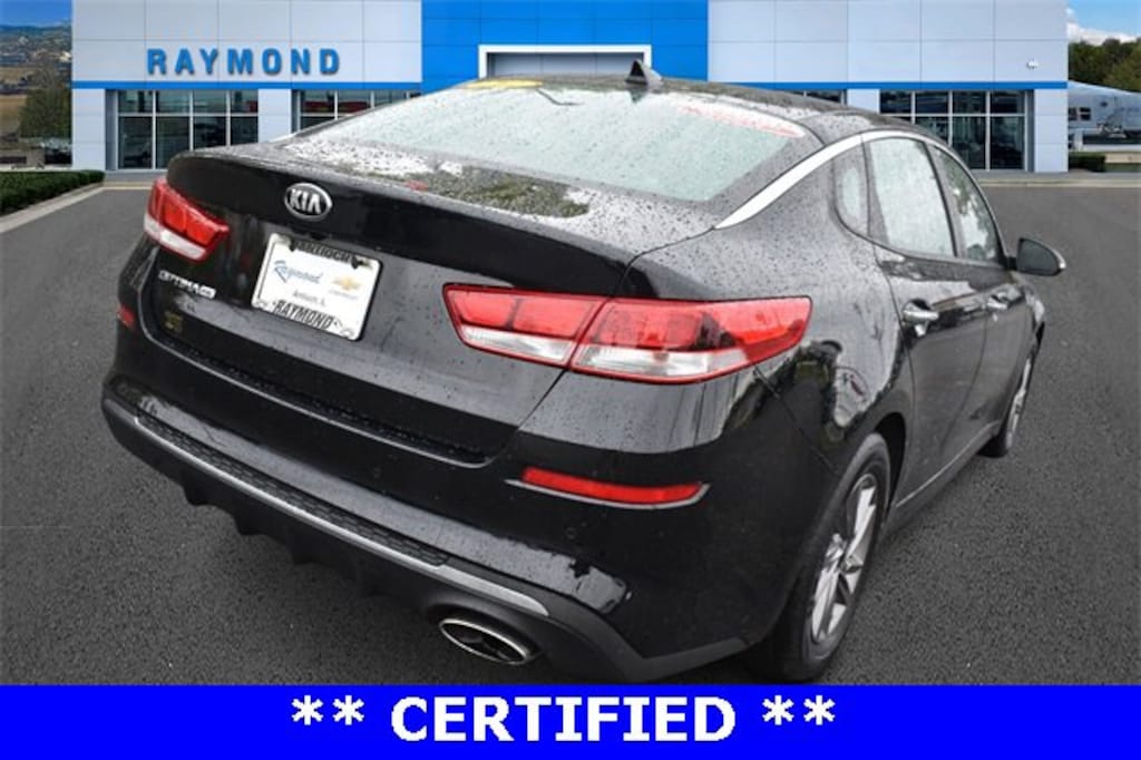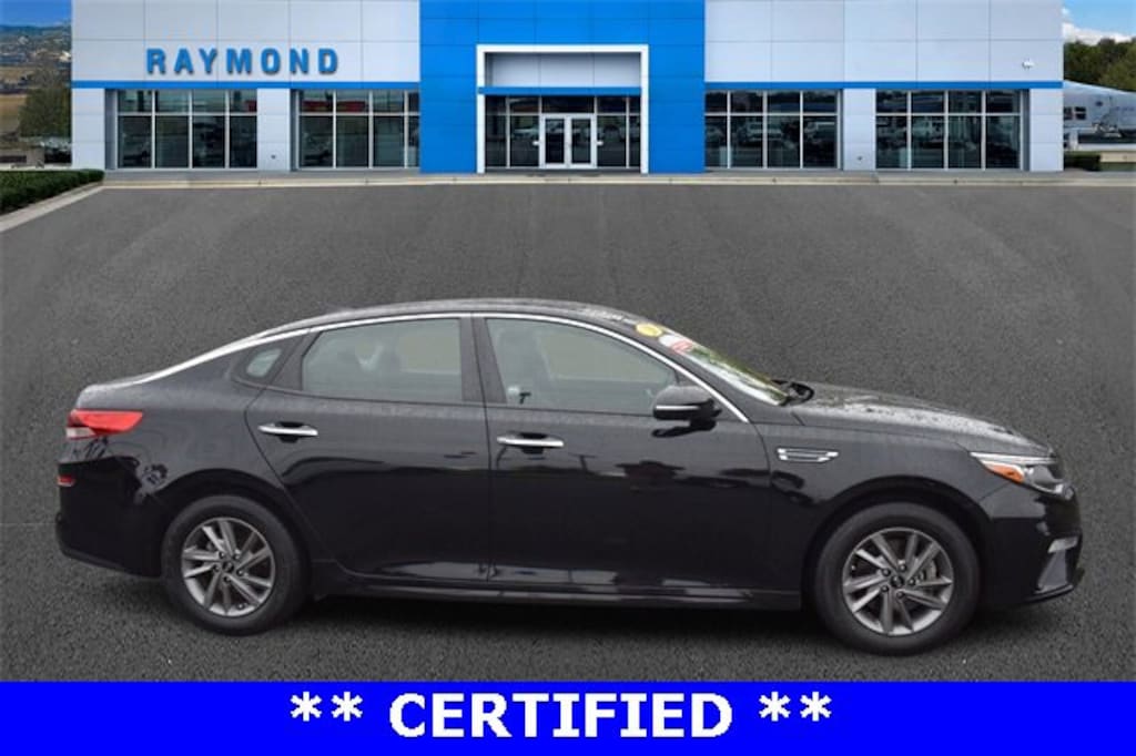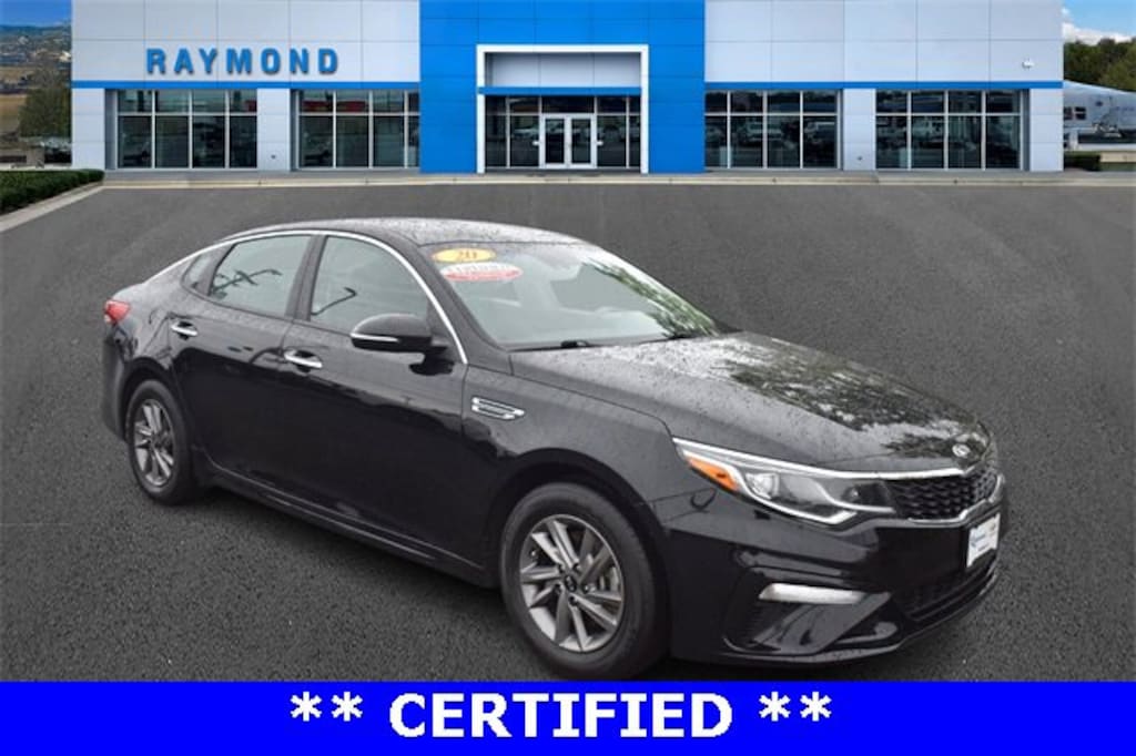CARFAX One-Owner. Certified. Ebony Black 2020 Kia Optima LX FWD 6-Speed Automatic with Sportmatic 2.4L I4 DGI DOHC Black Cloth, LX Brown Interior Color Package, Radio data system, Radio: AM/FM/MP3 Audio System, Remote keyless entry, Steering wheel mounted audio controls.